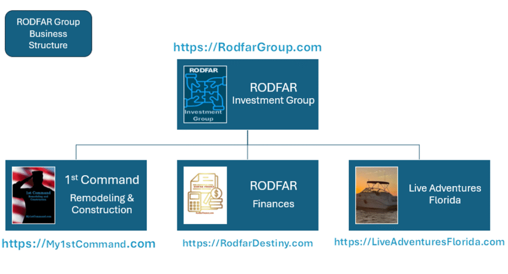RODFAR Docs and IDs Our Companies, Products and Services can be found at the following websites: RODFAR Investment Group RODFAR Finance 1st Command Remodeling and Construction Life Adventures Florida